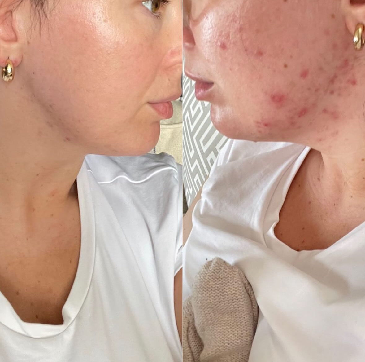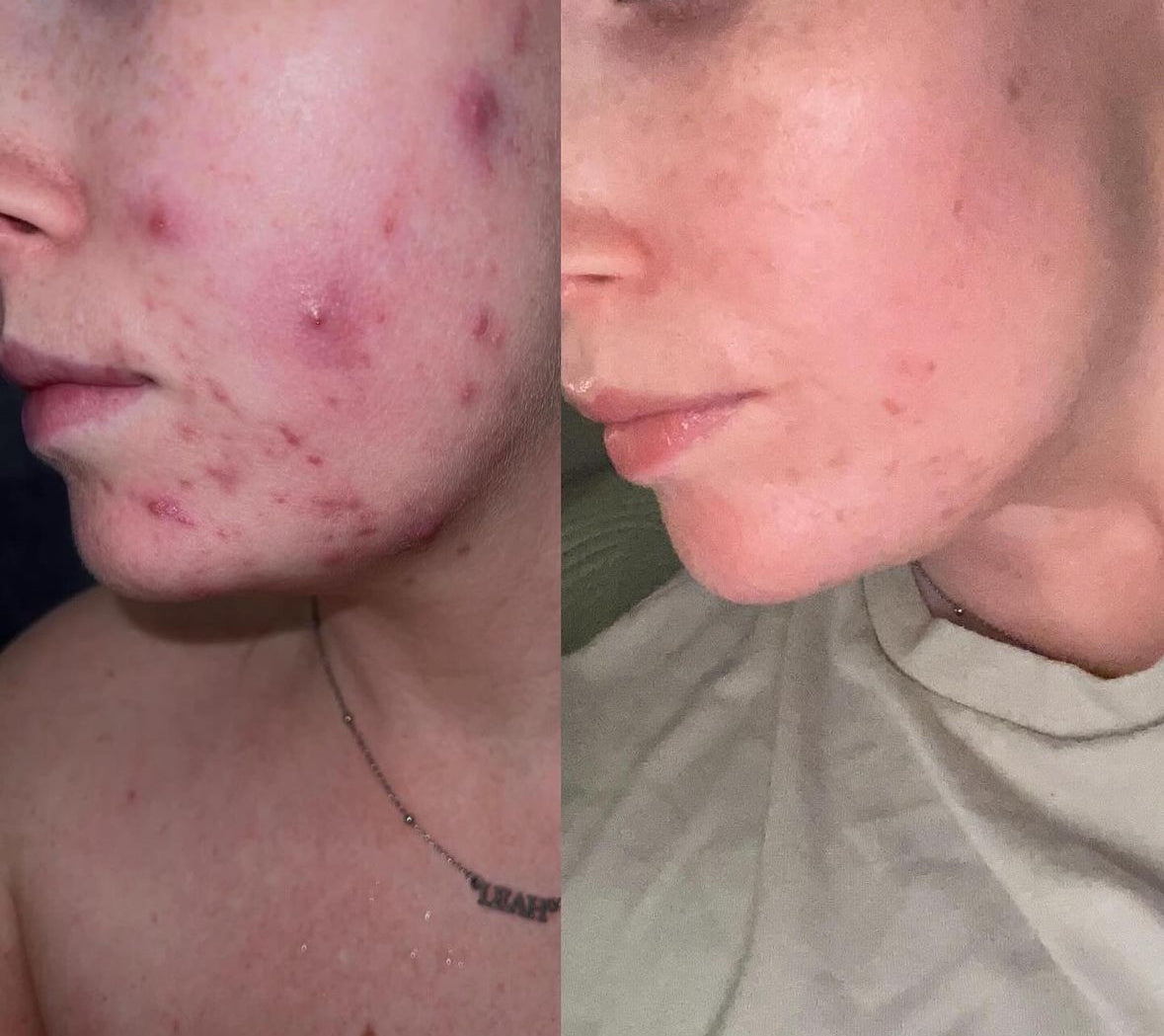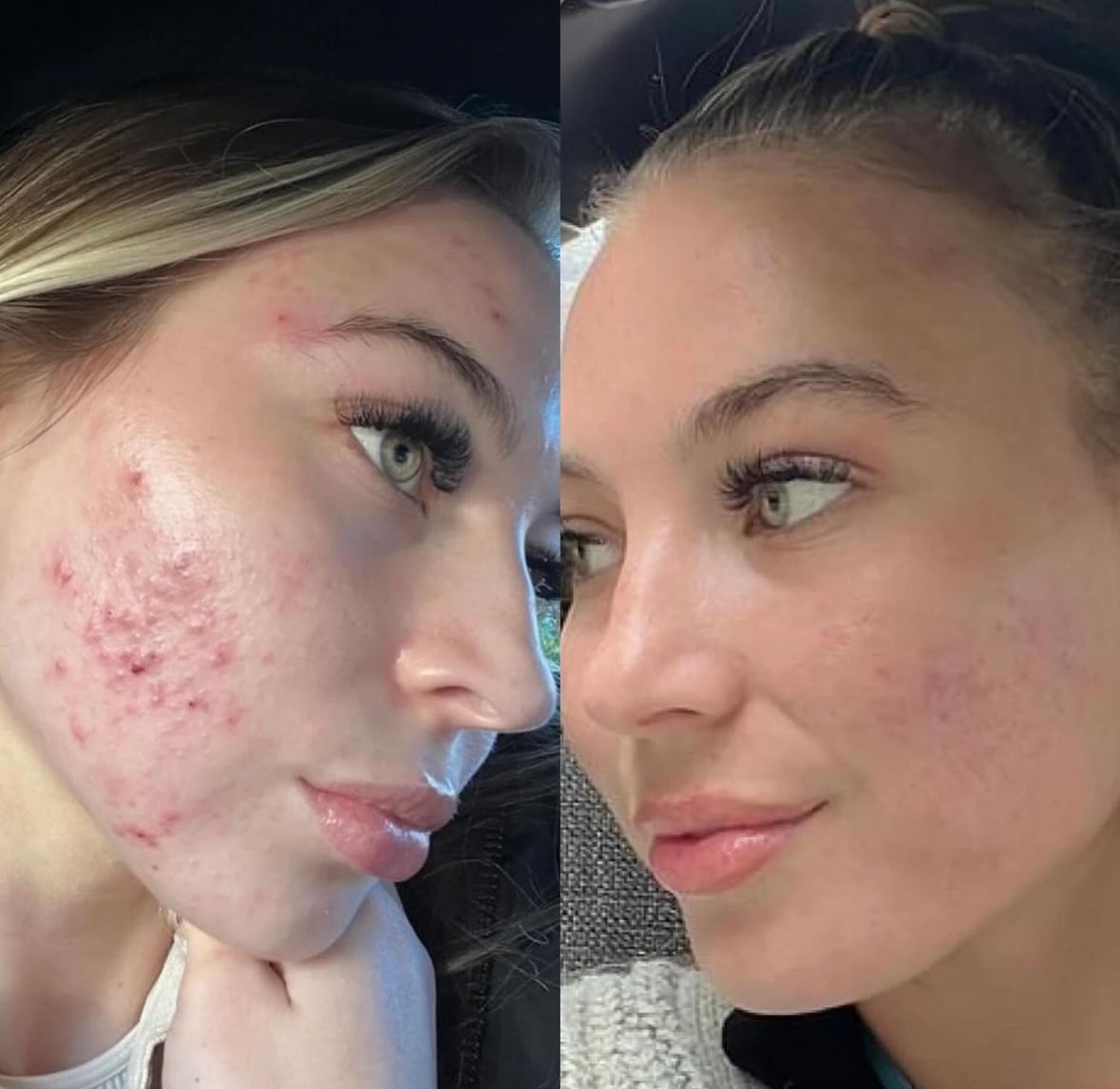This is me 4 weeks apart after taking Clear & Calm. My skin was red, inflamed, with a constant cycle of breakouts.