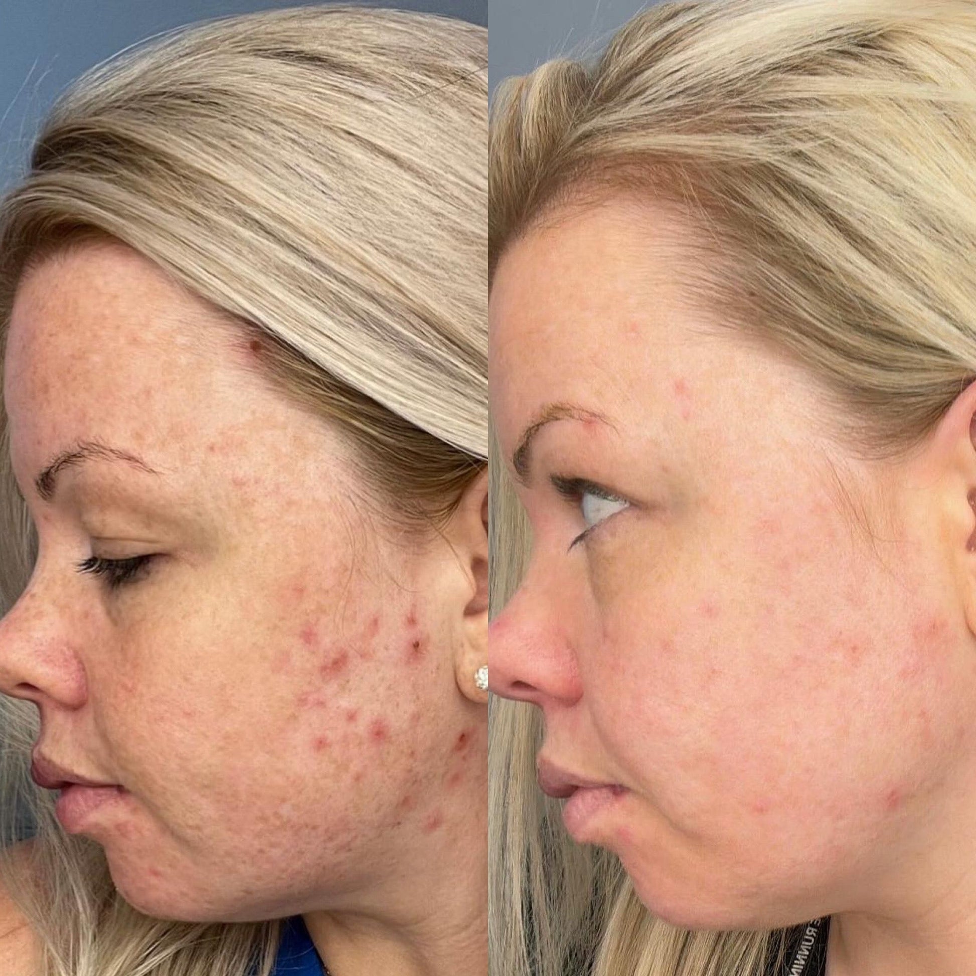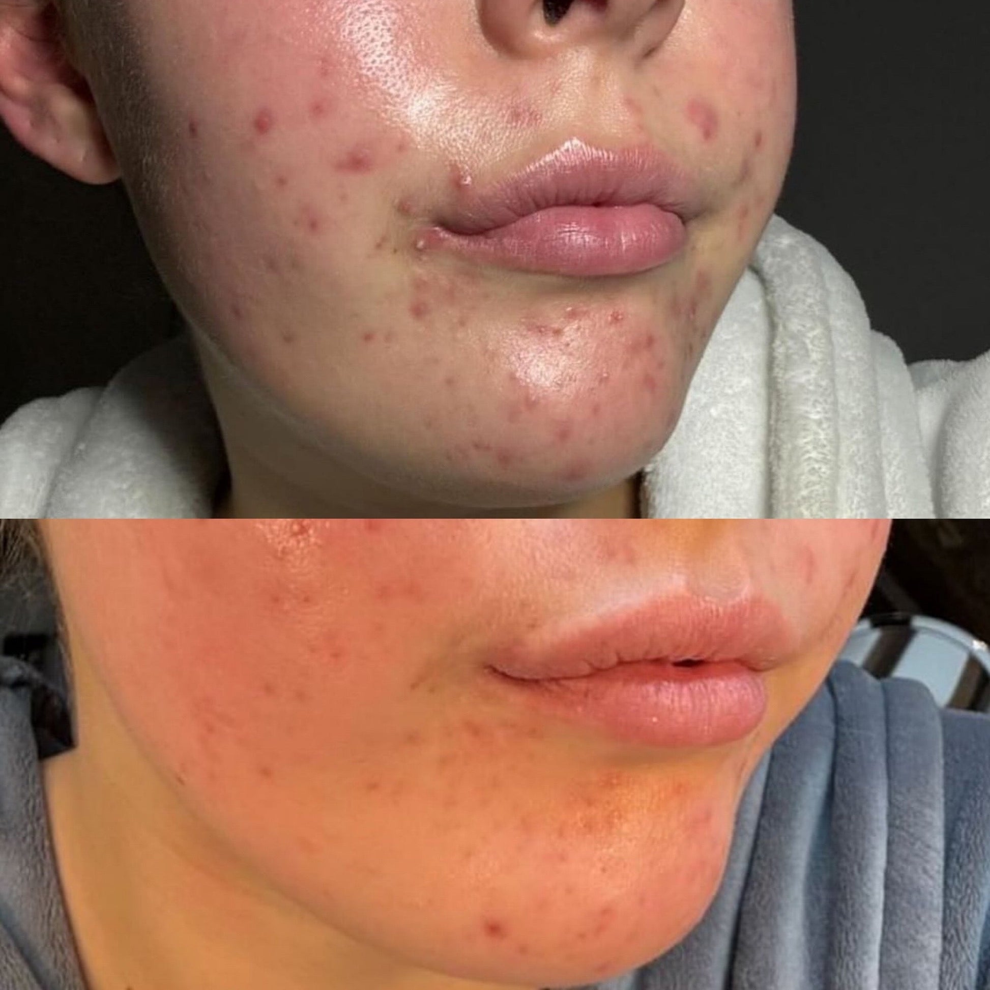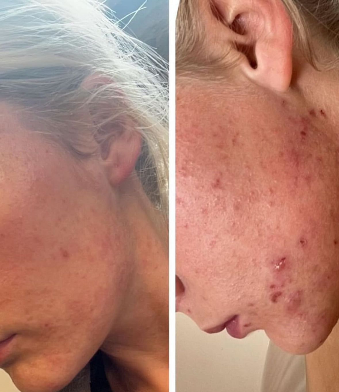 This is me 4 weeks apart after taking Clear & Calm. My skin was red, inflamed, with a constant cycle of breakouts.
